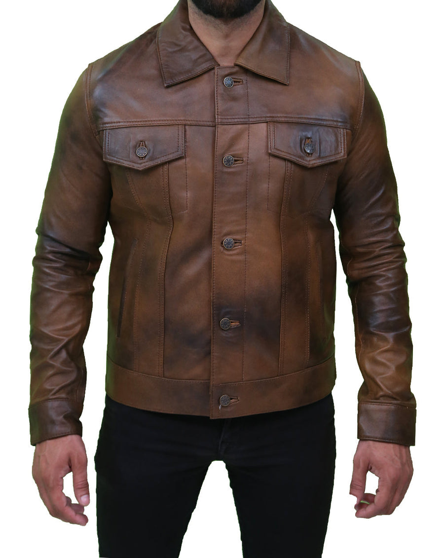 Mens Vintage Classic Leather Trucker Jacket