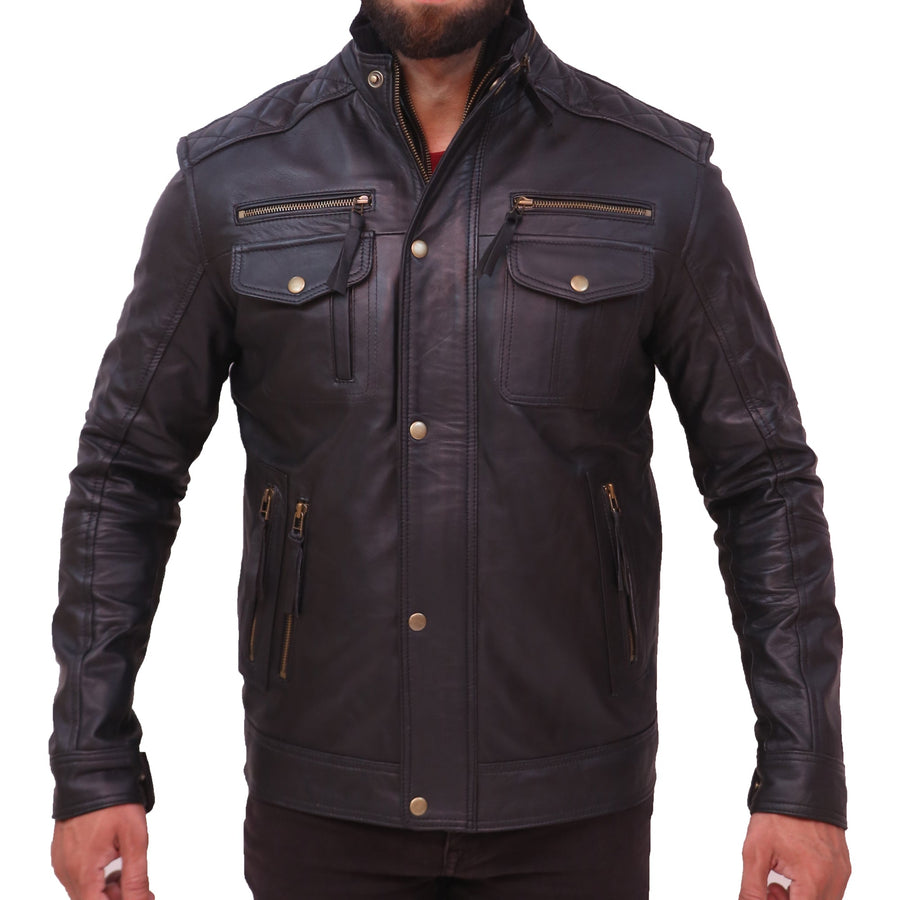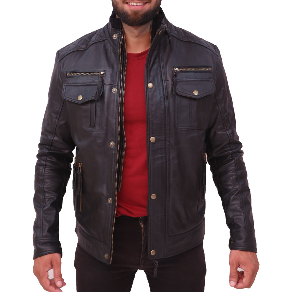 Moffit Men's Black Leather Motorcycle Jacket
