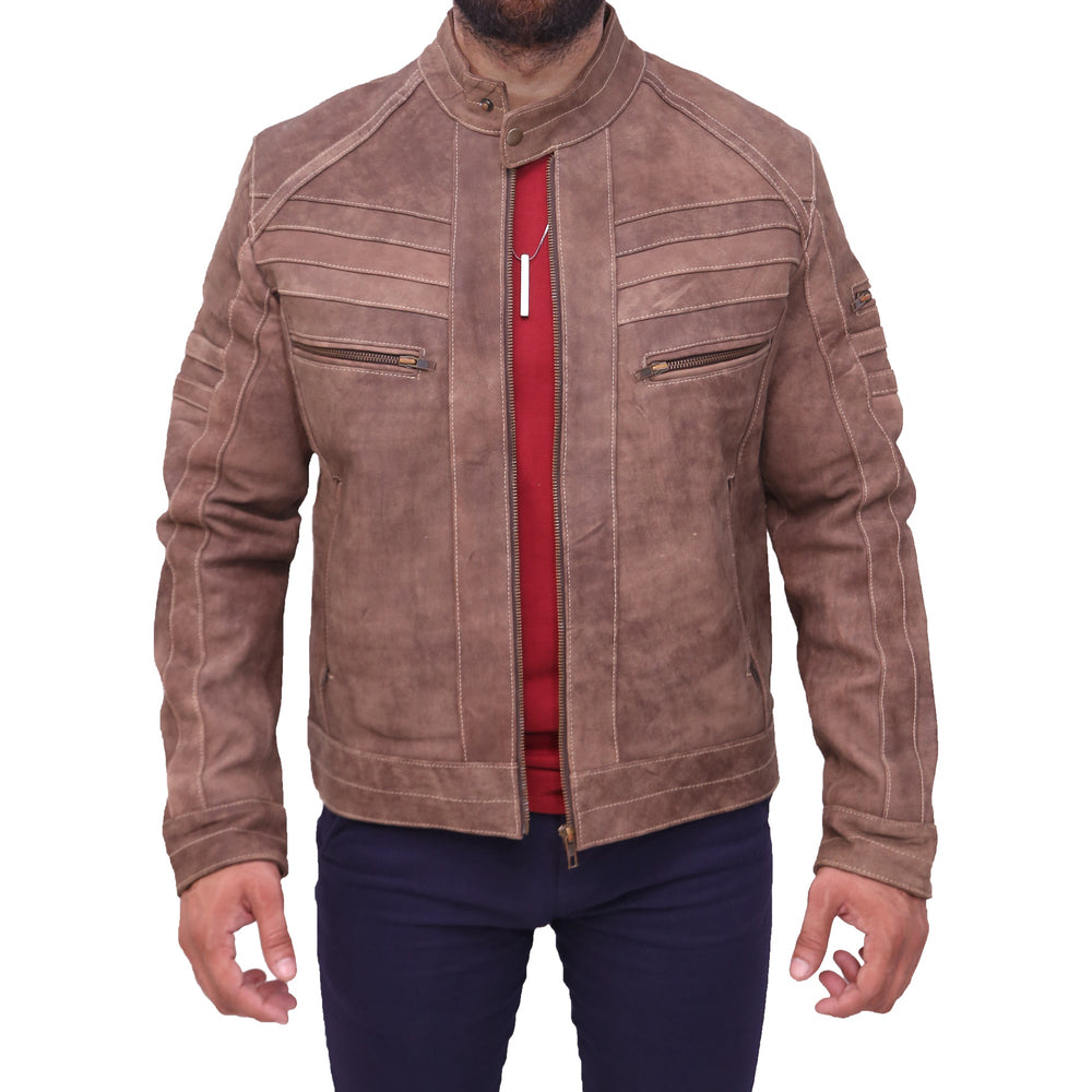 Austin Men's Distressed Brown Leather Cafe Racer Jacket