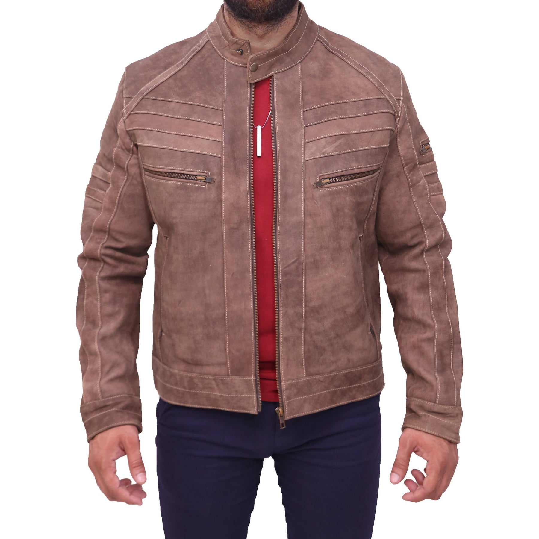 Designed in elephant brown leather, this men’s brown motorcycle jacket is no ordinary feat. The color is unlike any brown shade you have ever seen. Its natural, its nude and it looks great on everyone of all skin tones.
